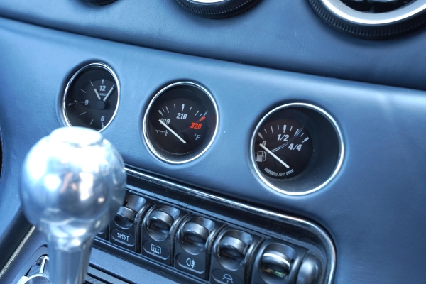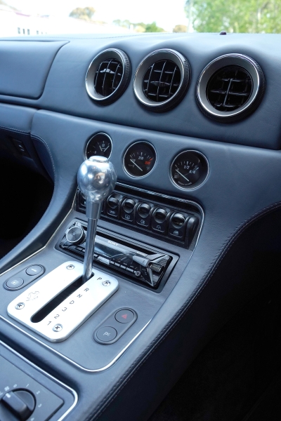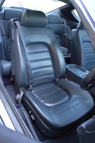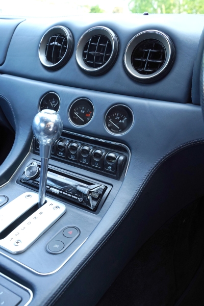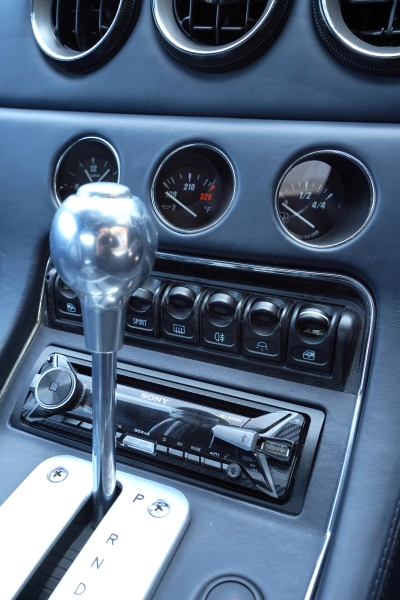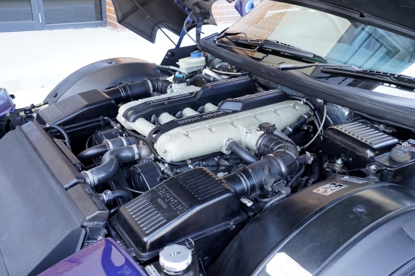 IIt has undergone routine maintenance and is in above-average condition for its age. The original navy blue Connolly leather interior is in excellent shape, with minor wear marks showing on the driver’s seat bolster.