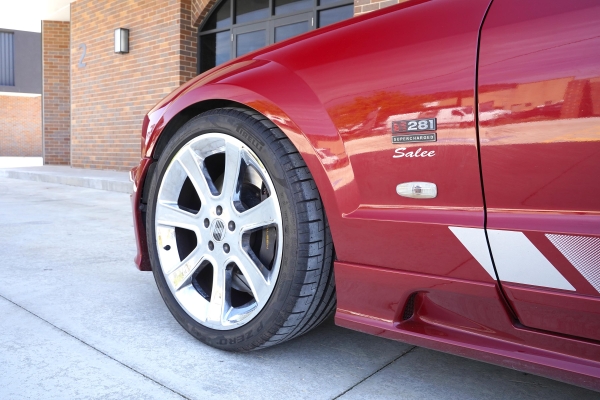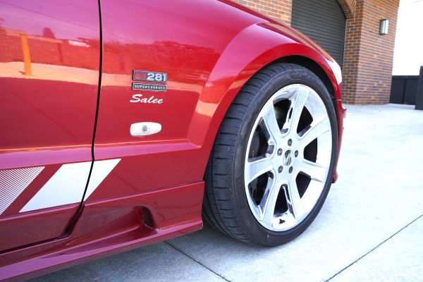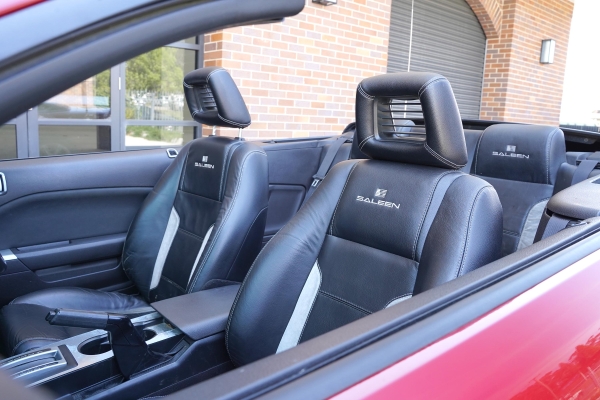 Standard features include an electric folding fabric roof, Saleen S281 exterior styling kit, 20-inch Saleen alloy wheels, Saleen chassis tune, Saleen leather sports seats, dual airbags, power steering, ABS brakes and an Alpine double-DIN stereo.