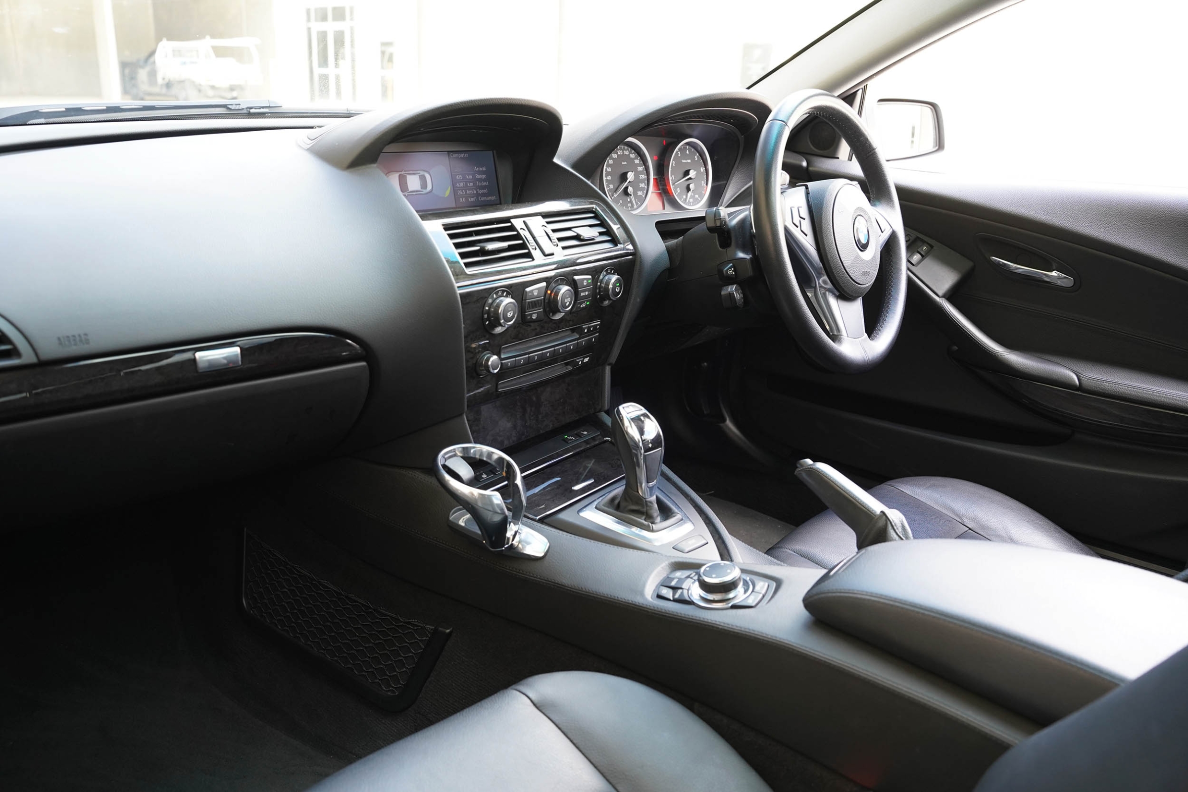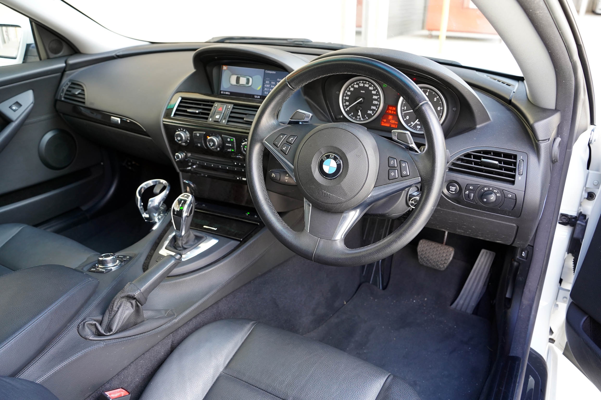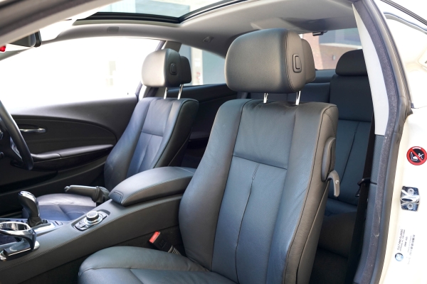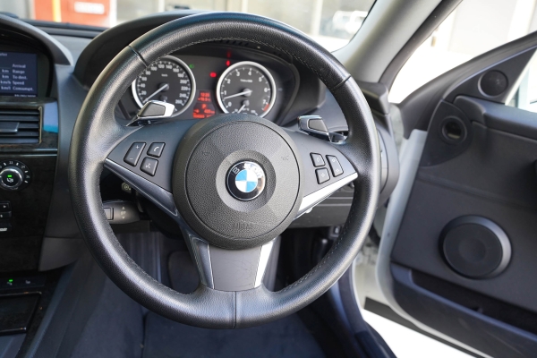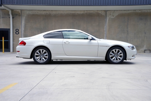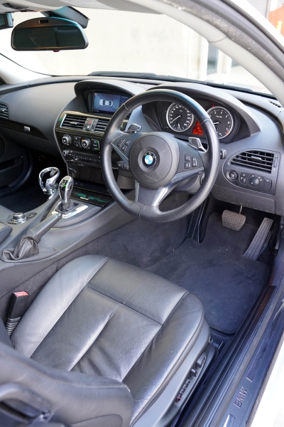 This BMW 630i was built in March 2010 and finished in Pure white with an full black leather interior and dark timber inlays.