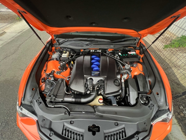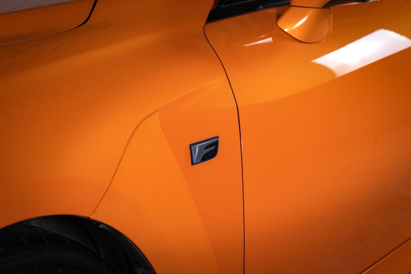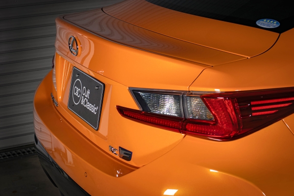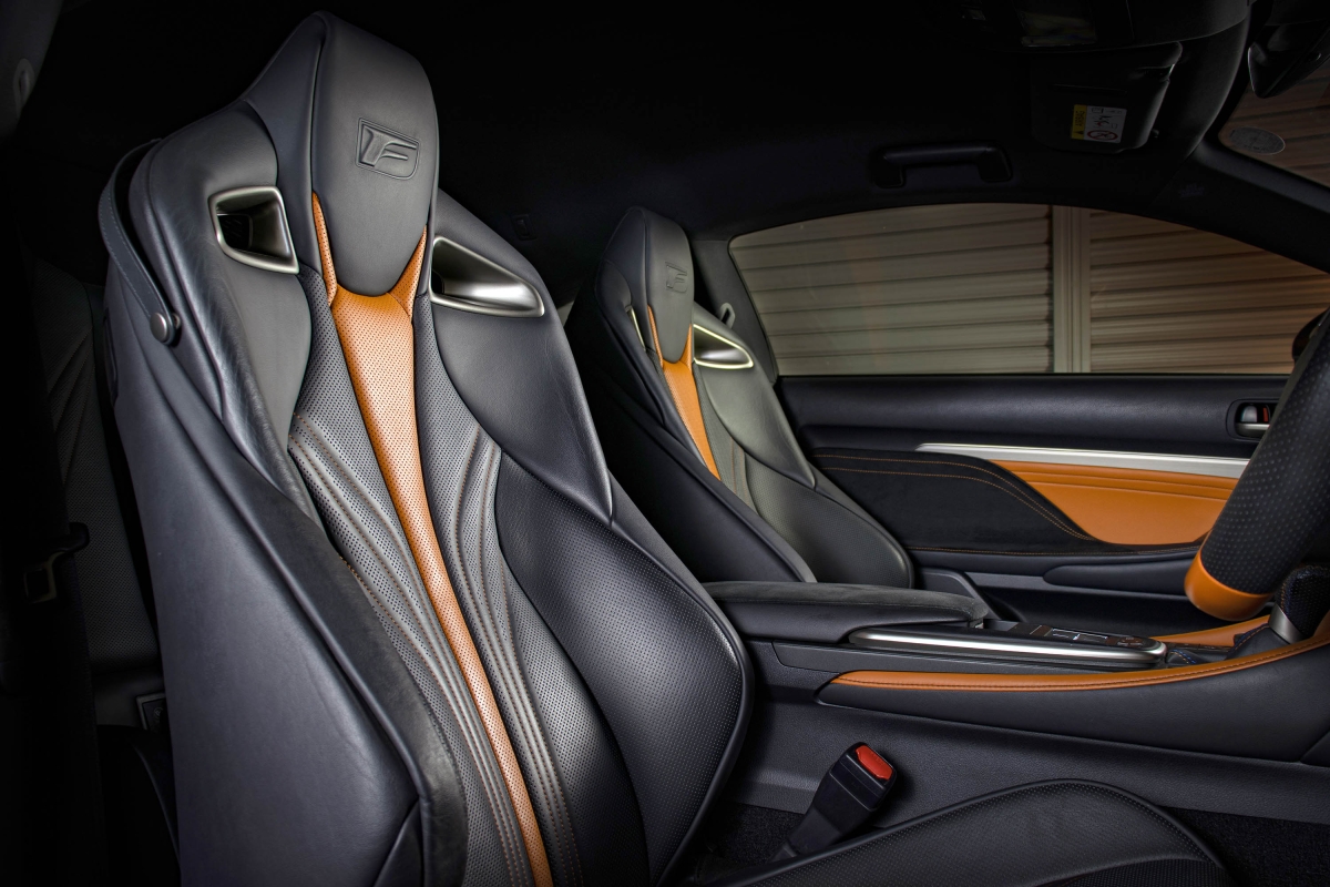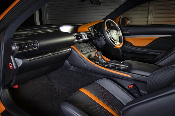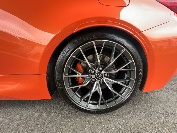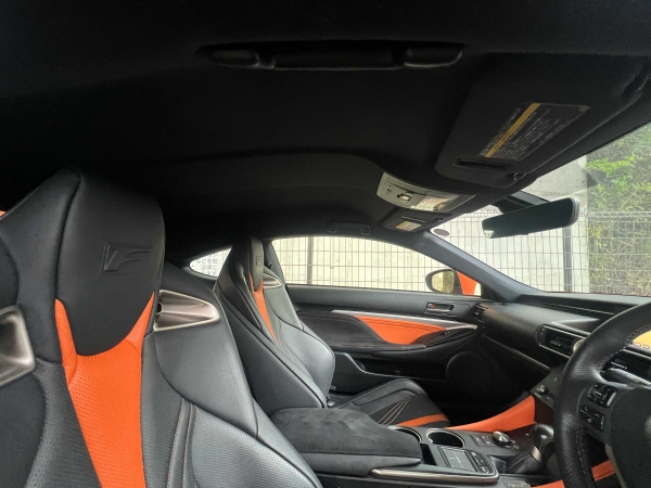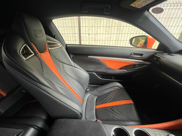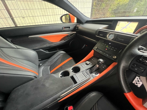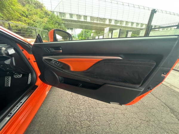 This Lexus RC F was built in October 2014. It was one of the first 130 cars ever built and was factory configured in Lava Orange Crystal Shine with an unusual black/orange interior option.