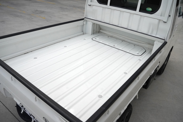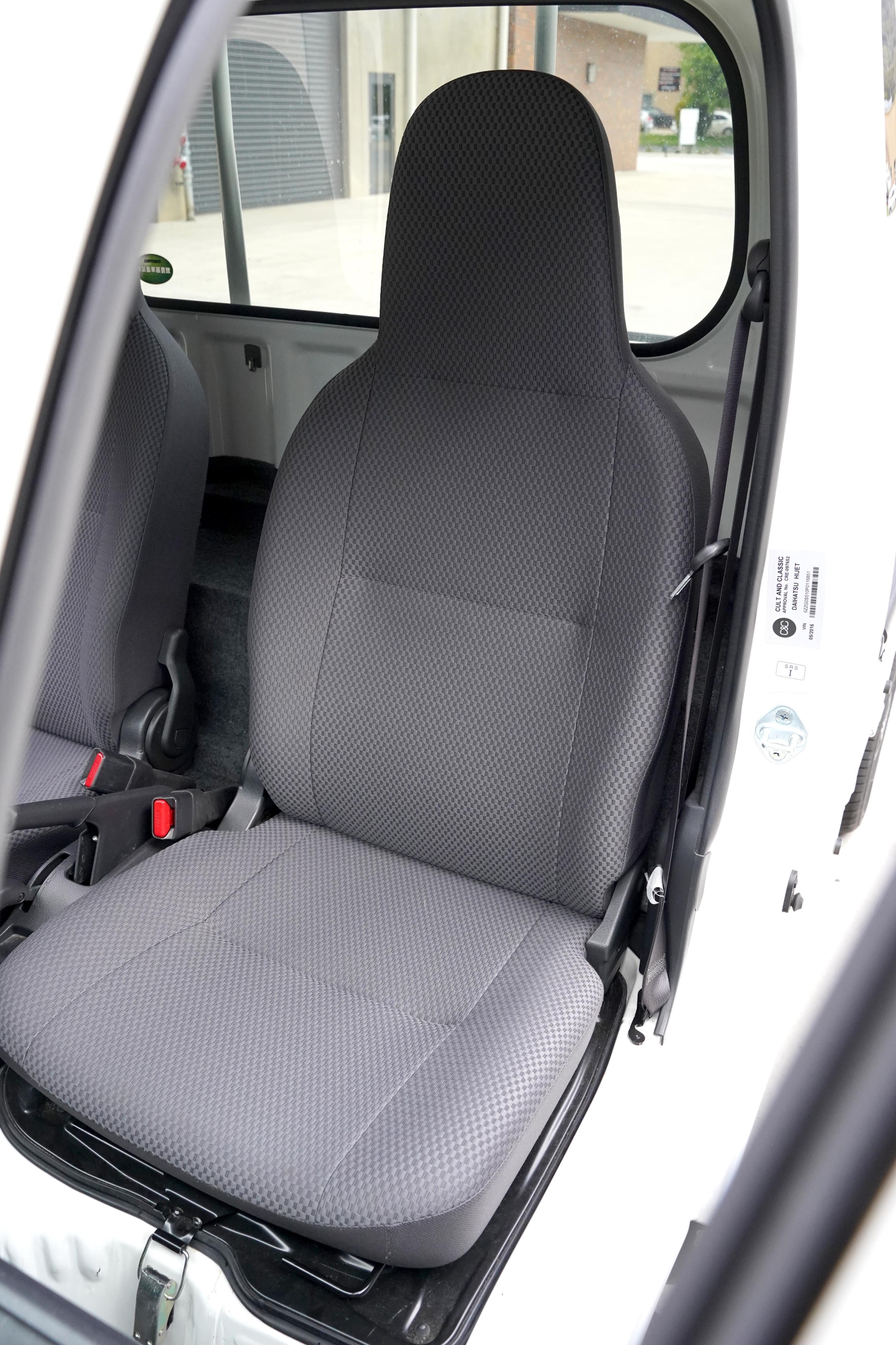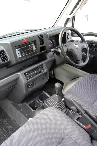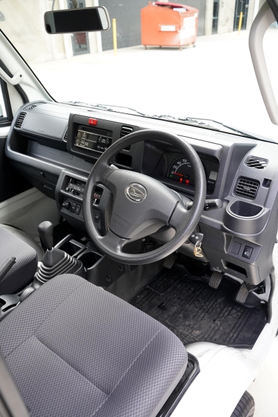 The Hijet Jumbo’s drop-side tray measures up at 1.70 metres long by 1.40 metres wide and will carry around 350 kg safely. There is a small bulkhead extension which allows slim lengths of up to 1.90 metres to fit in the tray.