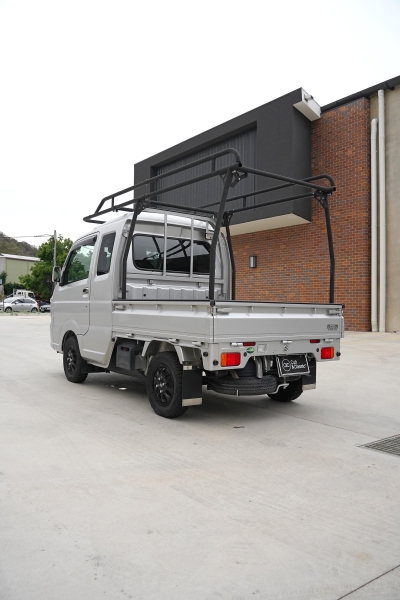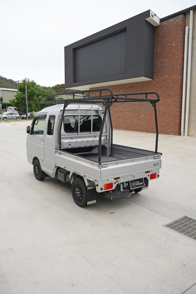Aftermarket extras on this truck consist of a Hard Cargo ladder rack, genuine JDM 14-inch rims with Toyo all-terrain tyres, tray edge protectors, a rear exterior light mounted on the rear window guard and exterior weather shields. The tray is in above-average condition with minor marks commensurate with age. The interior presents as new.