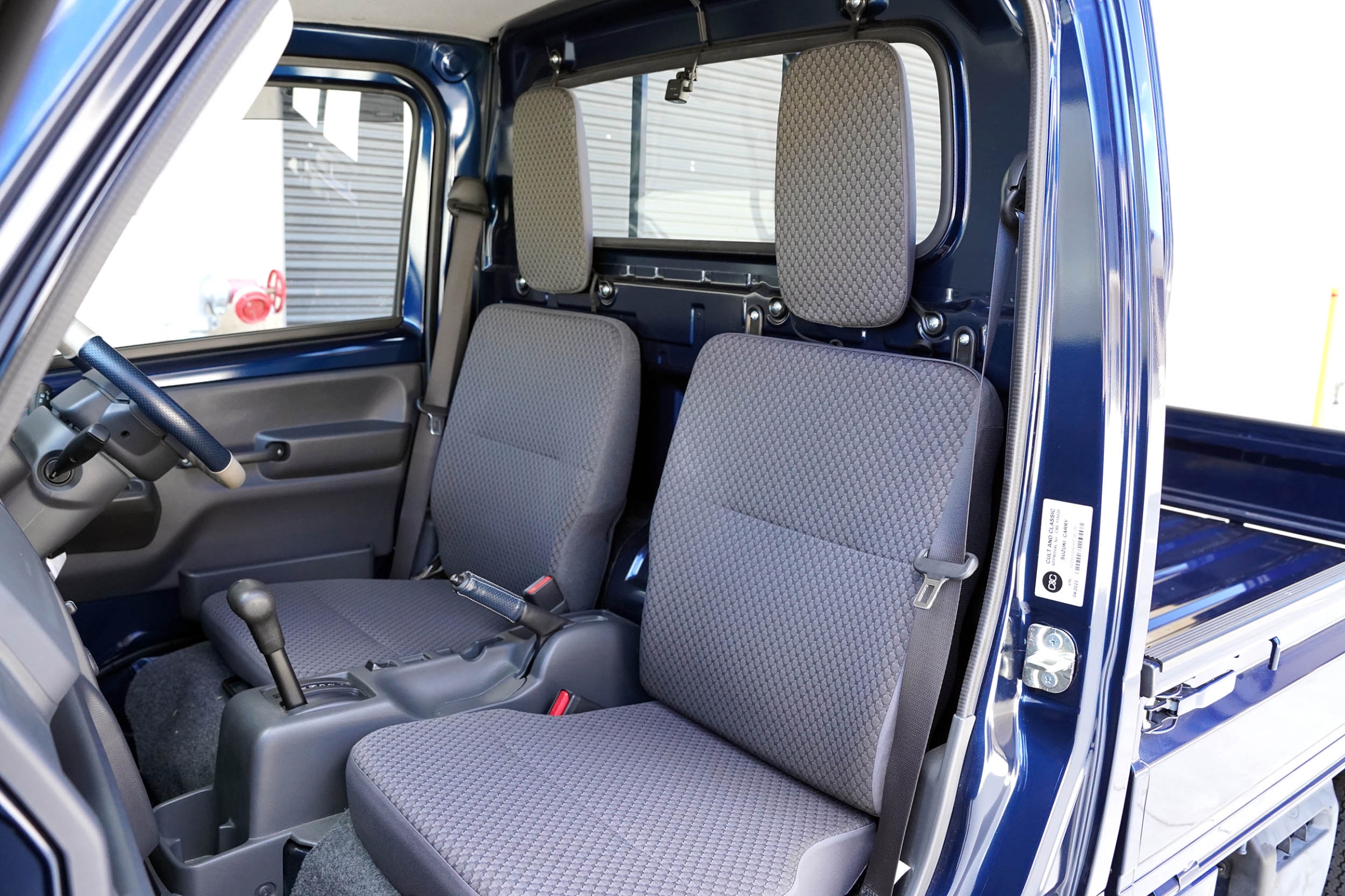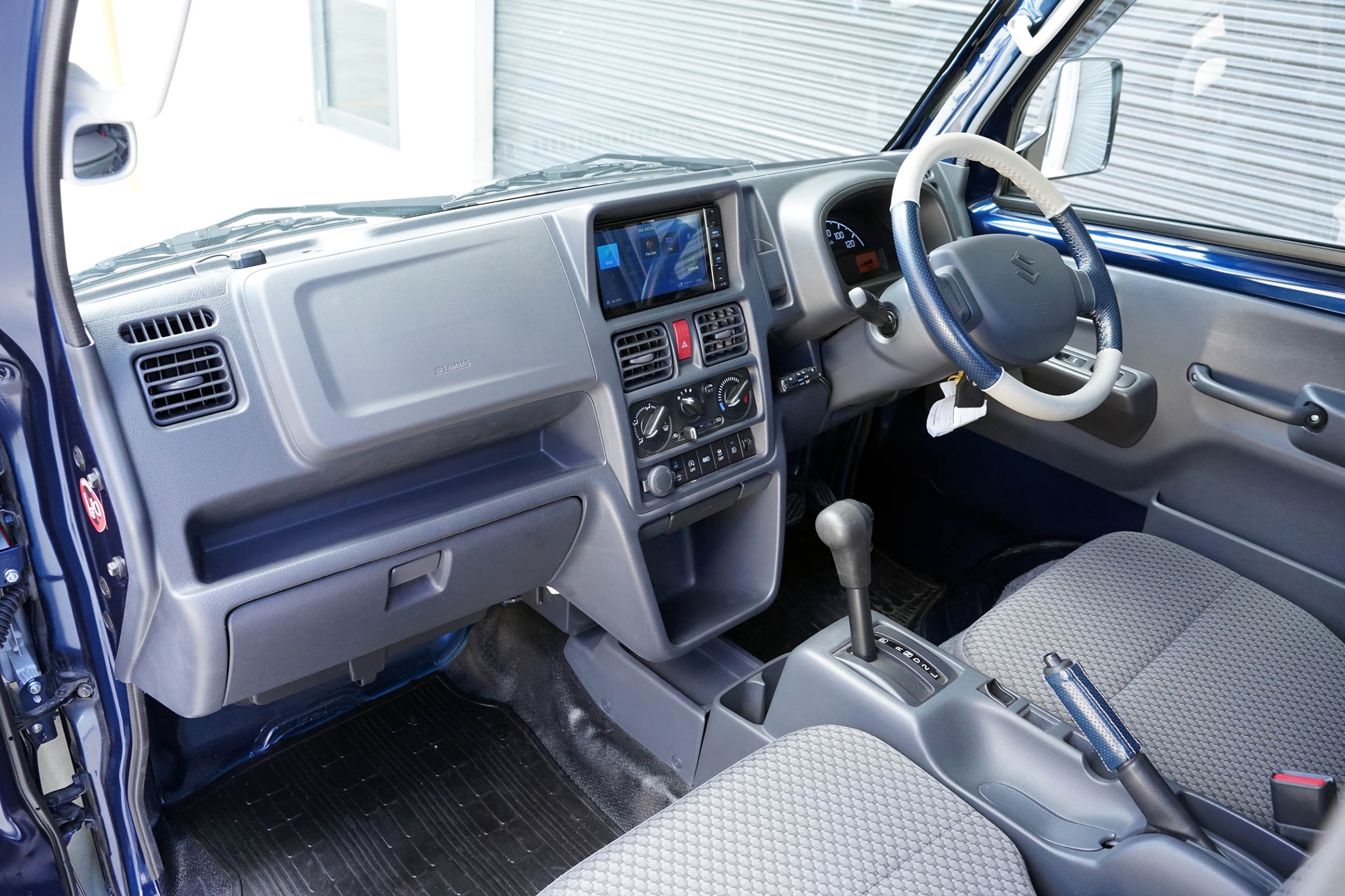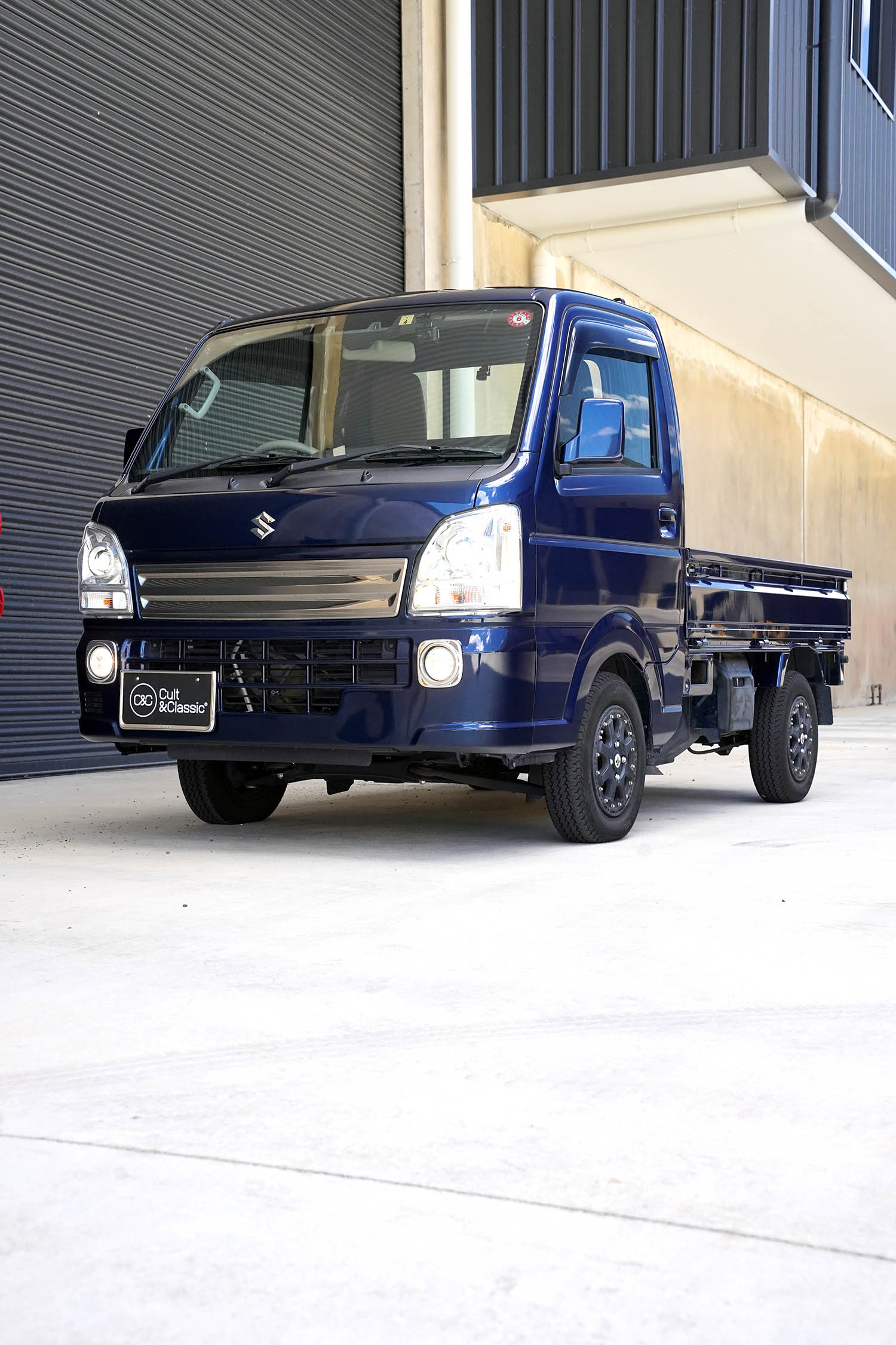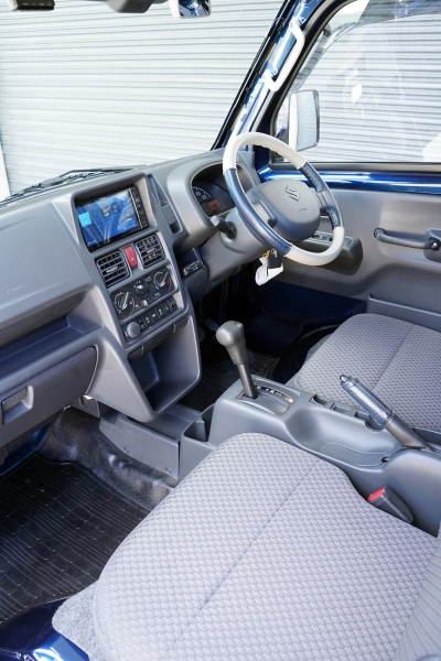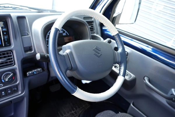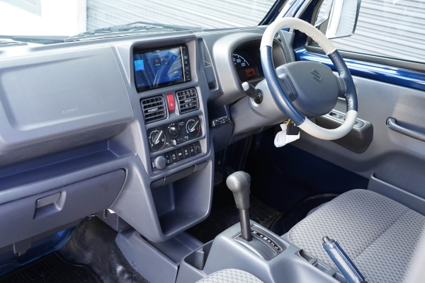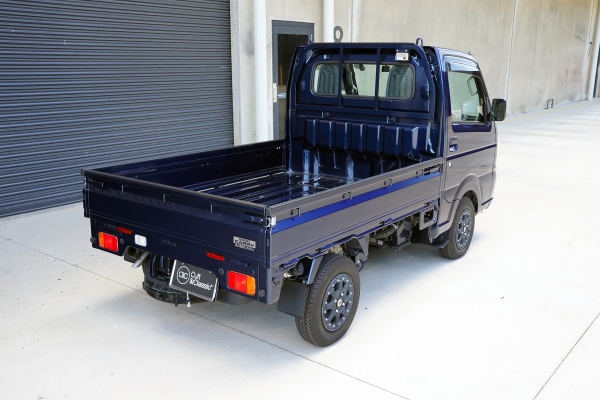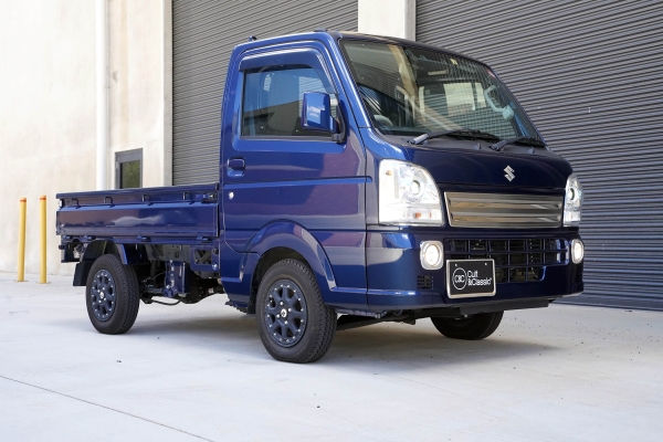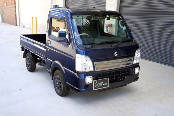 This Suzuki Carry was built in April 2023 and was purchased from USS Tokyo (Japan) as a 4.5B grade vehicle. That means it’s in excellent condition for its age and looks close to new. It was factory optioned in navy blue metallic.