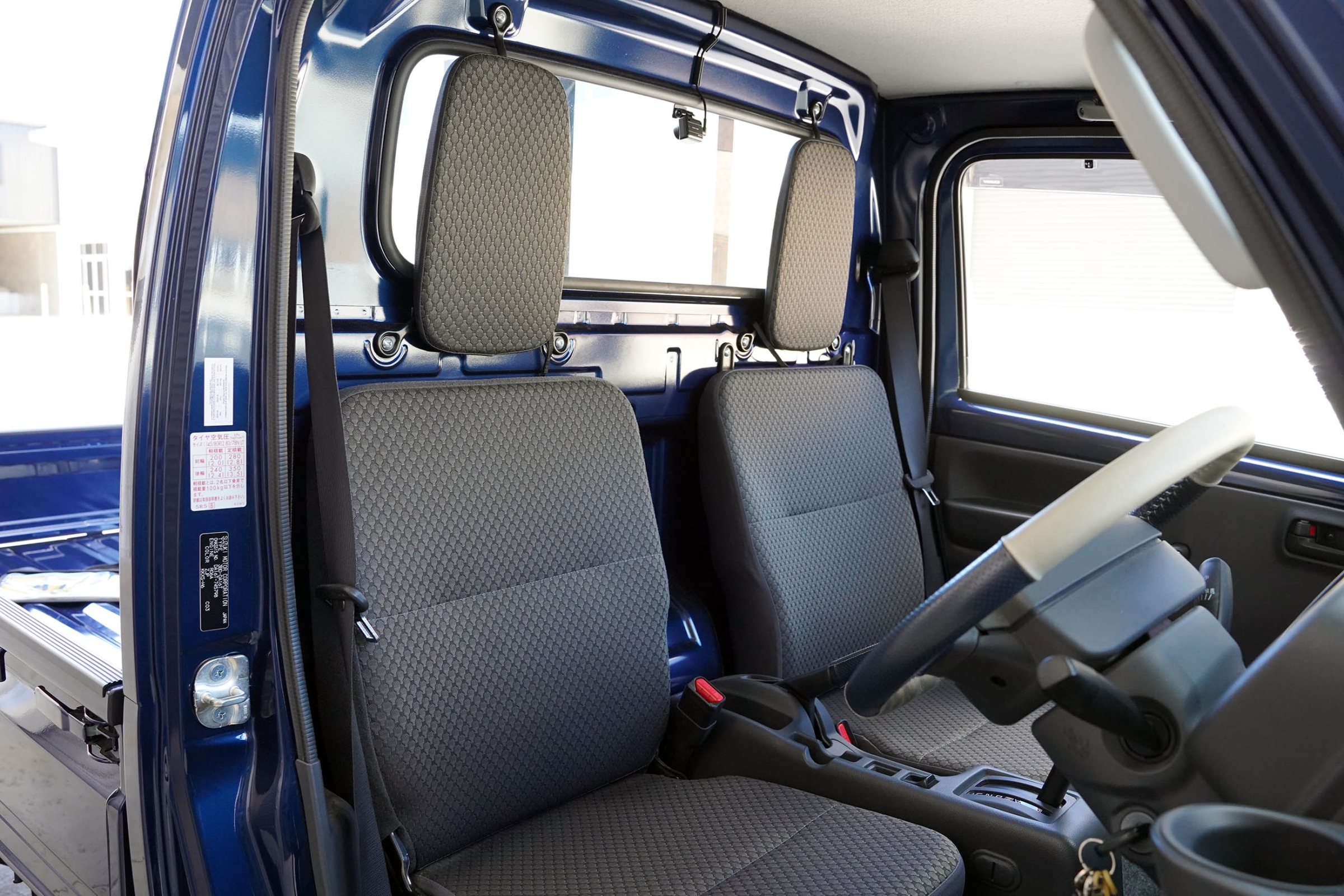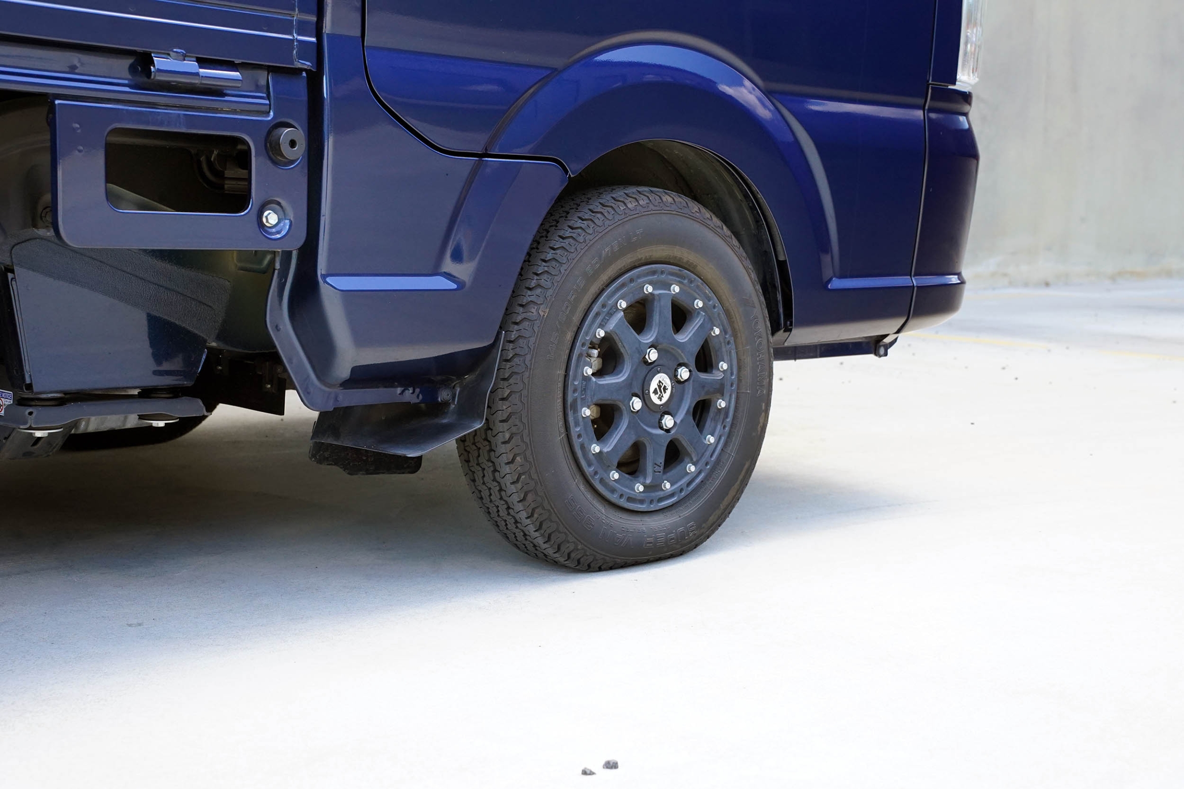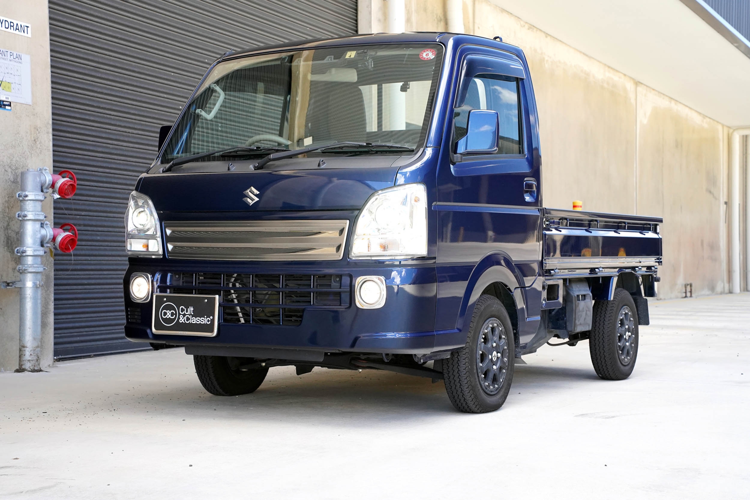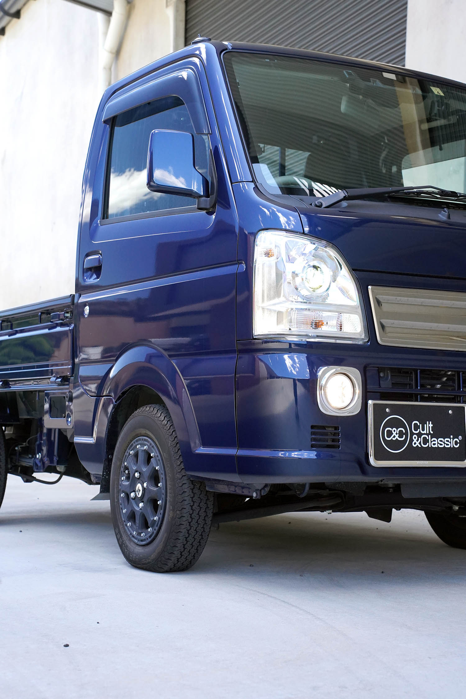 This Suzuki Carry was built in April 2023 and was purchased from USS Tokyo (Japan) as a 4.5B grade vehicle. That means it’s in excellent condition for its age and looks close to new. It was factory optioned in navy blue metallic.